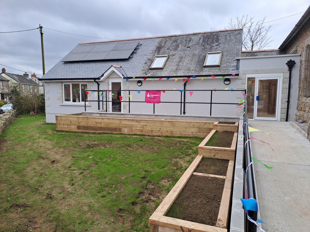 We built a second, good size meeting room, we refurbished and insulated the existing hall, including lowered ceiling, insulated floor and secondary glazing. The hall is now draft free, warm and comfortable. The hall can now be accessed via a ramp, ensuring the whole community can take advantage of the new facilities. There are two kitchens with new, units, counter and appliances. There are three separate WCs, with baby change, one is marked as disable but all three are spacious. The stage in the original hall has been re-built and will have stage lighting and AV equipment to allow theatrical groups, performers, live music and screening of films and talks, bringing essential life experiences to the heart of the village. The Hall will also have broadband fitted, to encourage youth groups, job seekers and clinics to use the space. The improved hall will also enjoy renewable heating and energy to offset costs and carbon footprint. Outside there will be a small community orchard and raised beds for accessible gardening.